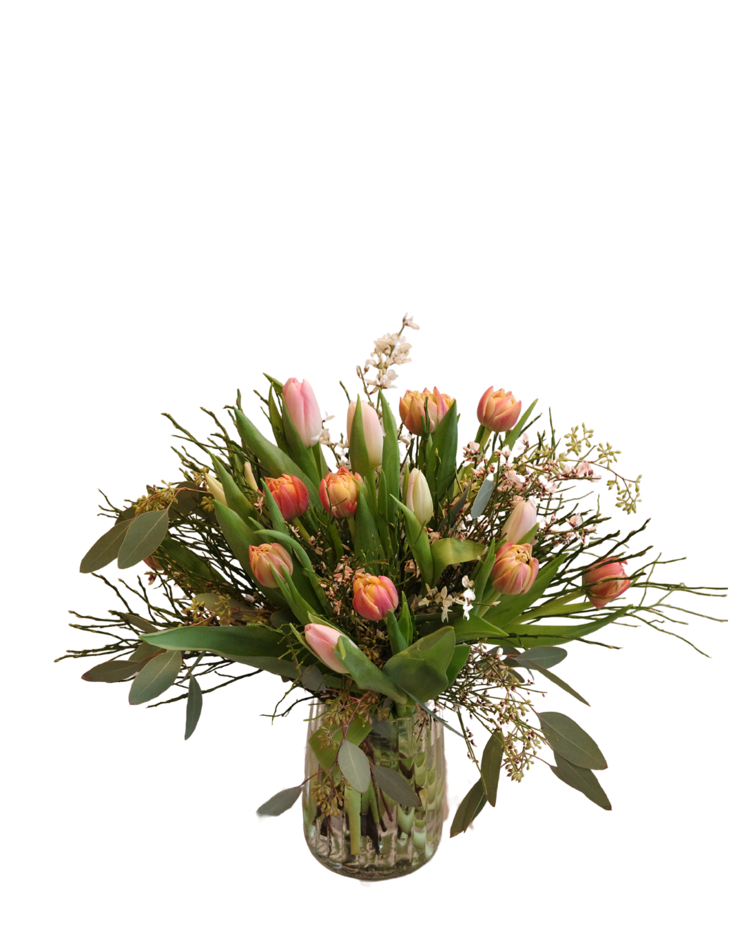 „Hello Spring“ ist ein frischer und lebendiger Blumenstrauß, der den Frühling in all seinen Farben widerspiegelt. Im Mittelpunkt stehen wunderschöne Tulpen in frühlingshaften Farbtönen. Begleitet werden die Tulpen von lockerem, frischem Grün, das dem Arrangement Natürlichkeit und Lebendigkeit verleiht. Er ist der perfekte Blumenstrauß, um den Frühling willkommen zu heißen.